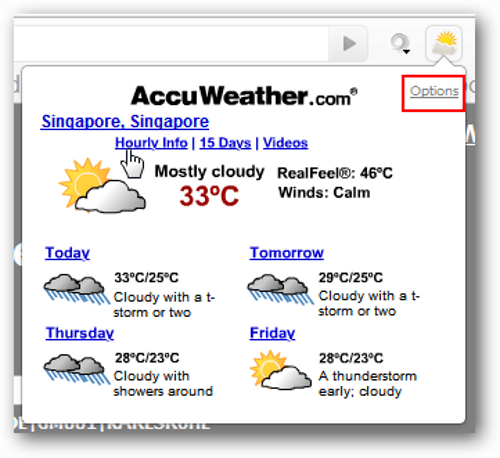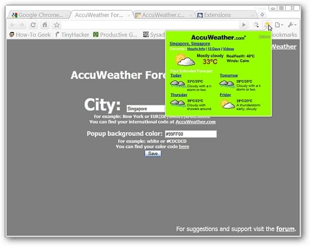 AccuWeather Forecast es la extensión necesaria para poner el pronóstico dentro de Chrome. Primero que nada debe descargarla desde el Chrome Web Store.