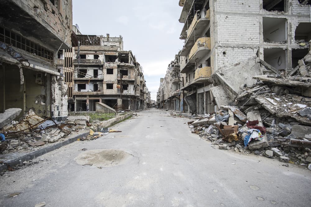 La ciudad, declarada Patrimonio de la Humanidad por parte de la UNESCO desde el año 1986 por la influencia arquitectónica de hititas, asirios, árabes, mongoles, mamelucos y otomanos, en la actualidad se encuentra completamente en ruinas por los ataques aéreos, terrestres y las bombas.