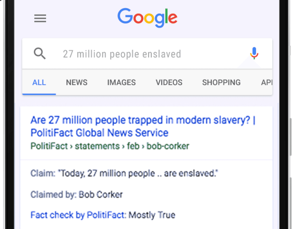 Los análisis de estos medios de prensa también podrán ser incluidos en la valoración de los resultados de búsqueda de Google, que irán acompañados de una etiqueta que, por ejemplo, dice que una afirmación es “mayormente cierta de acuerdo a PolitiFact”.