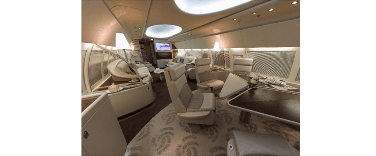 El Airbus A380 es un auténtico hotel de 5 estrellas, su costo fue de 500 millones de dólares. Nada mal para un príncipe ¿no?