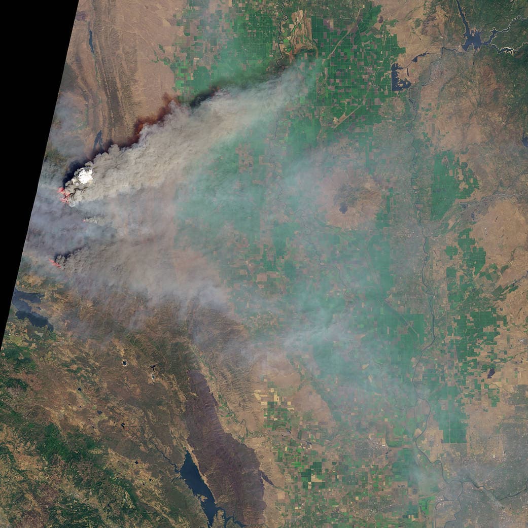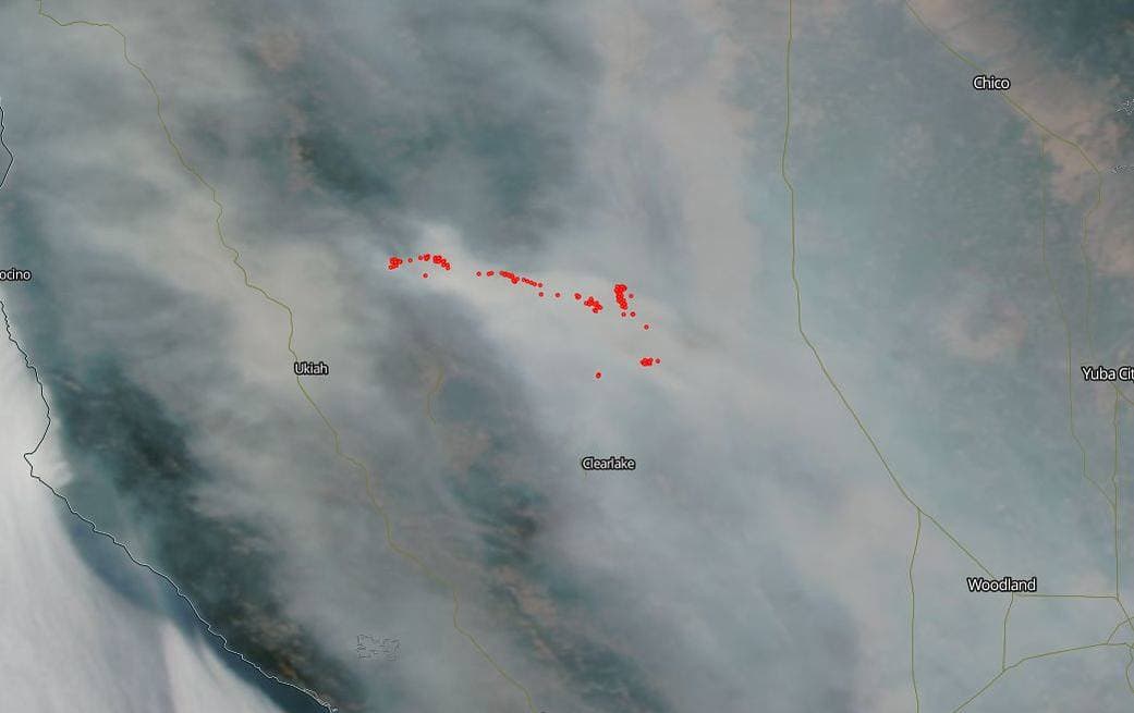 El parque Mendocino Complex desde la EEA, a 405 kilómetros de distancia del Océano Pacífico