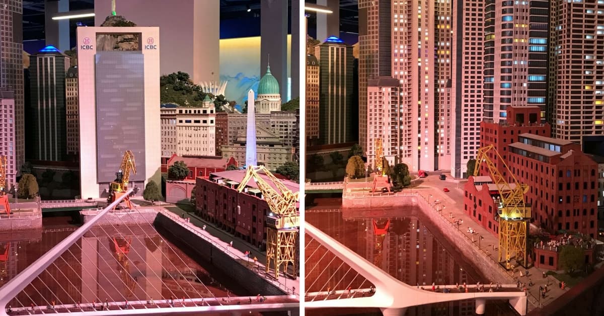 Ningún detalle escapa a los creadores de esta representación de Argentina en miniatura que incluso incluye las grúas y el mítico edificio del ICBC.