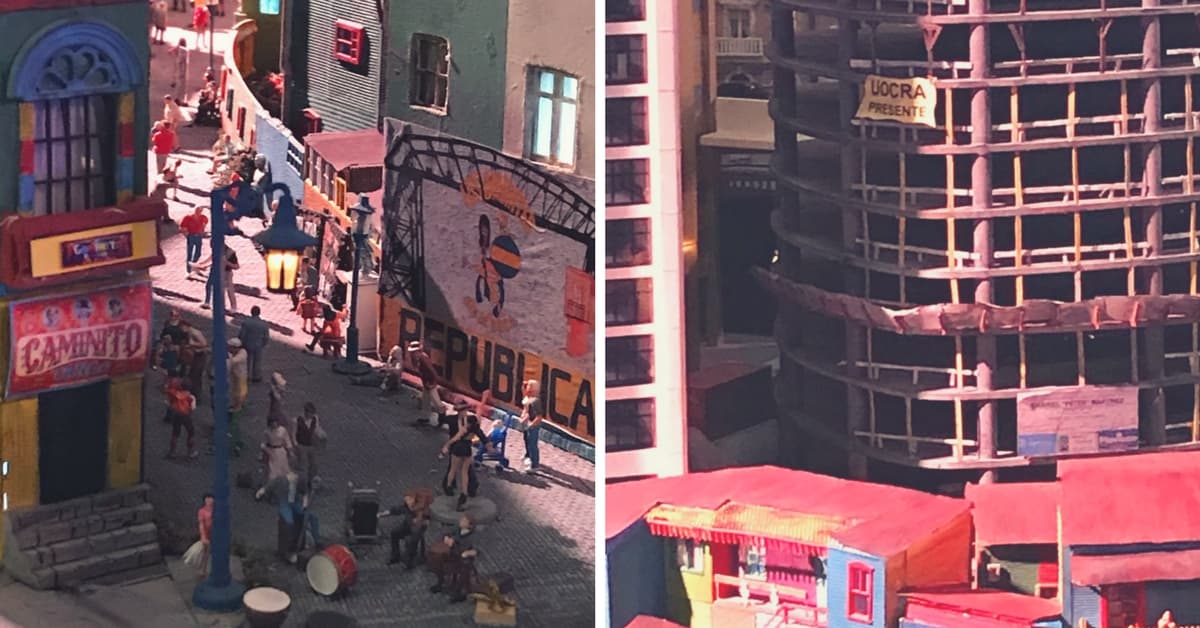 El cartel de la UOCRA (Unión Obrera de la Construcción de la República Argentina) es otro de los guiños a los argentinos que encontramos en la maqueta, representando el importante rol del sindicalismo en el país. No podía faltar Caminito (La Boca), con sus tradicionales colores y el tango sonando en sus calles.
