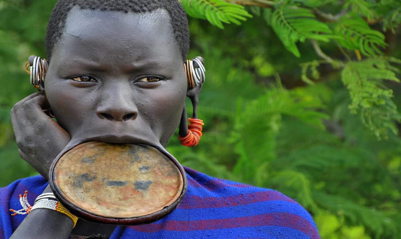 En Etiopía, país ubicado en el continente africano, se tiene un estándar de belleza poco usual. Las mujeres de la tribu de Los Mursi se colocan enormes discos de cerámica o madera dentro de su boca.