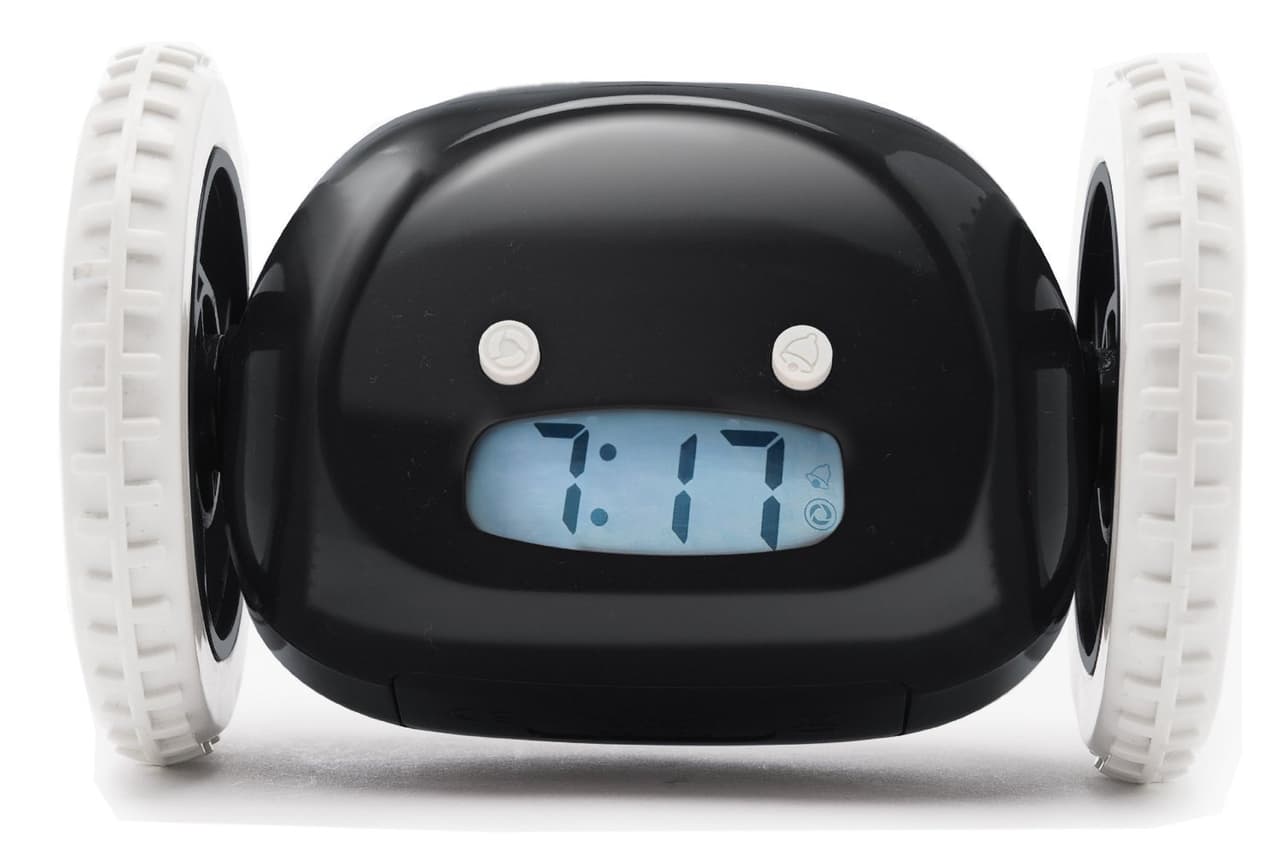 Clocky, es un reloj alarma muy especial, ya que una vez que suena comienza a rodar por la habitación y tendrás que perseguirlo para lograr apagar el molesto sonido de la alarma.