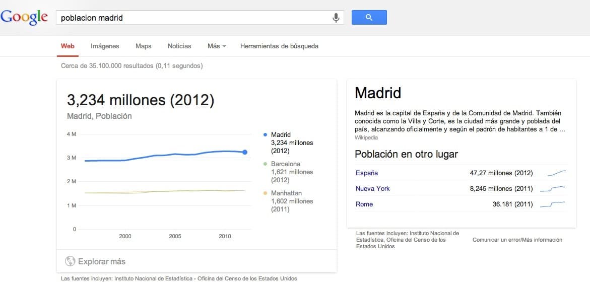 Si vamos a un lugar, tener información confiable sobre su población y situación actual, siempre es una buena idea. Google, nos entrega datos de forma inmediata, comparándolos con los de otras ciudades.