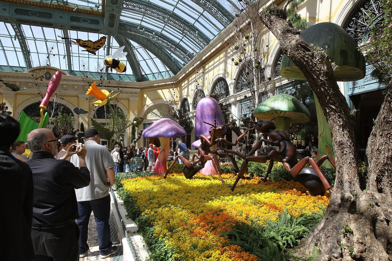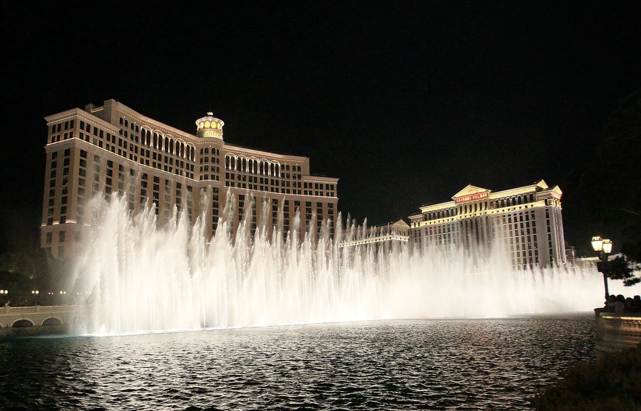Junto al hotel Bellagio forman un monumental y llamativo complejo, y uno de sus elementos visuales más característicos son las Fuentes de Bellagio y el lago artificial que las acompaña, que ofrecen un espectáculo de luces, música y colores.