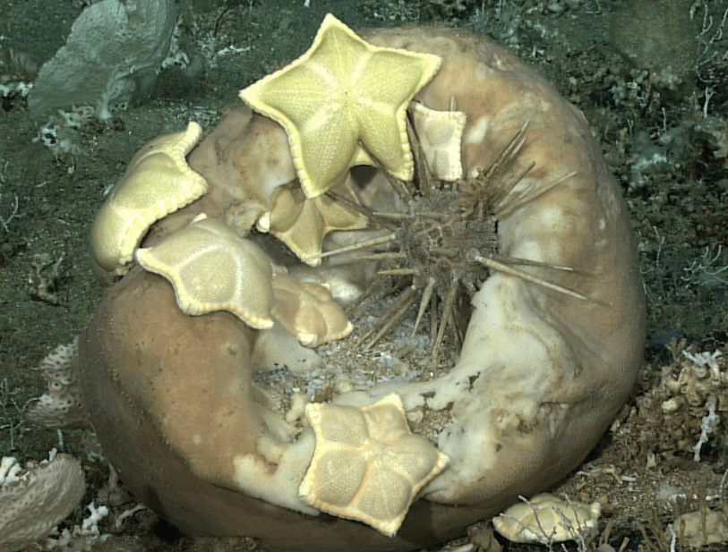 El 27 de julio de 2021 Christopher Mah, investigador de la Oficina Nacional de Administración Oceánica y Atmosférica, compartió un tweet donde se puede ver a una esponja marina amarilla y a una estrella de mar rosa, descansando en una piedra en el mar.