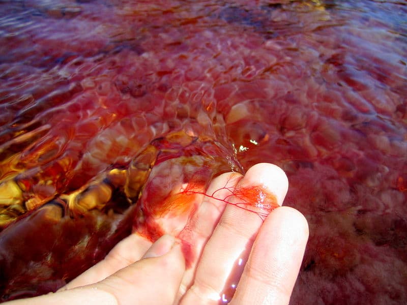 Y es en el esplendor de la temporada húmeda cuando se produce el momento ideal para reconocer los colores en las aguas de este río de 100 km de largo y 20 m de ancho. Allí, los niveles de agua crecen y las corrientes fluviales se hacen más rápido, lo cual permite que se oscurezca el fondo del rio, impidiendo que la luz del sol penetre hacia las algas y los musgos.