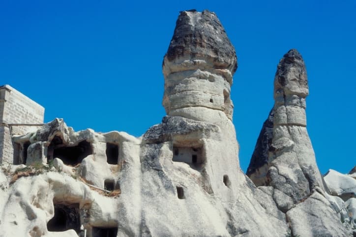 Capadocia es producto del trazo humano y natural. Los pintores iniciales fueron los volcanes Erciyes dagi y el Melendize dagi, que con cuyas erupciones dieron lugar a un terreno incomparable hace tres millones de años, el cual fue aprovechado por los seres humanos para construir asentamientos.