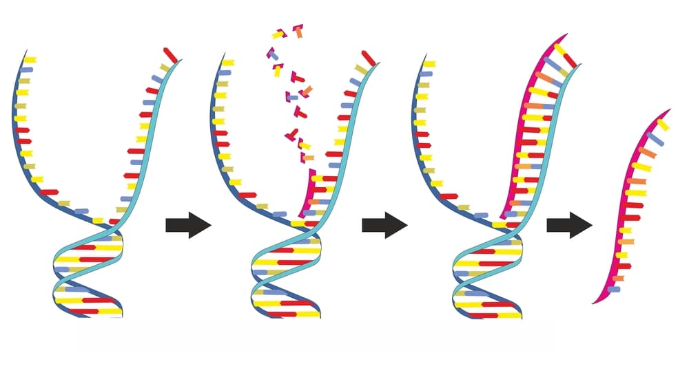 Este ADN produce un 'hilito' conocido como ARN (ácido ribonucleico), el cual es como una copia casi perfecta del ADN.
