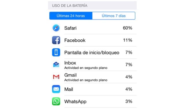Existen programas que miden el consumo de batería de las aplicaciones y, en iOS 8, se nos muestra cuánto están gastando si vas a Ajustes, General, Uso, Uso de la Batería.