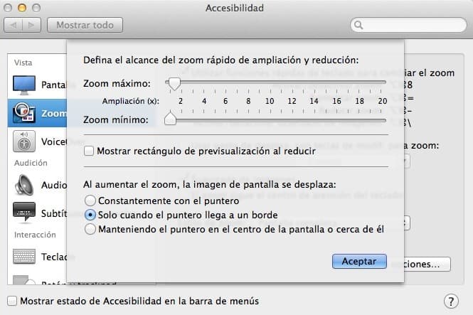 Si necesitas ver una ventana en mayor tamaño, activar el Zoom en OS X es muy sencillo y puedes manejarlo mediante atajos de teclado: