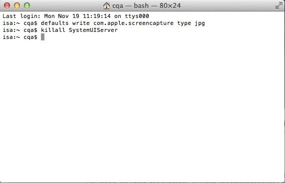 Como dijimos anteriormente, por defecto Mac OS X guarda las capturas en el escritorio y en formato PNG. Esto, se puede cambiar utilizando un par de simples comandos desde la terminal.