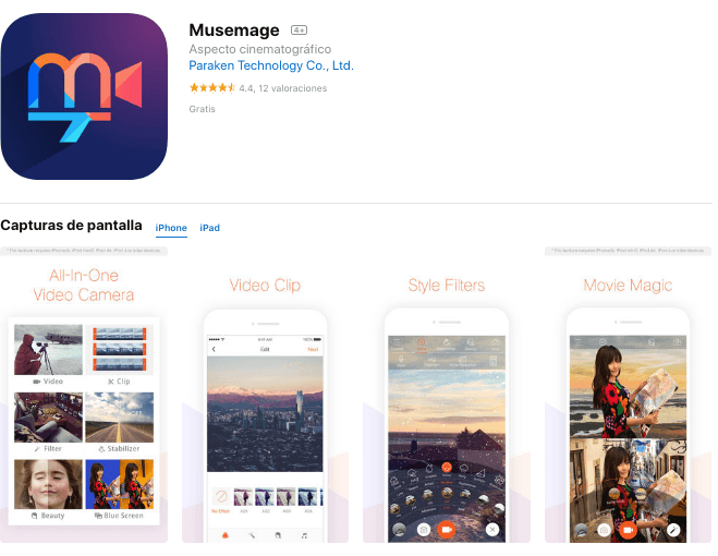 Musemage es una aplicación todo-terreno. Te sirve para ser ocioso, para el trabajo o para crear cualquier contenido que quieras, pues maneja siete modos de disparo: video, foto, pantalla azul, retardo de video, para de movimiento de animación, color mágico o el disparo de obturación lenta.