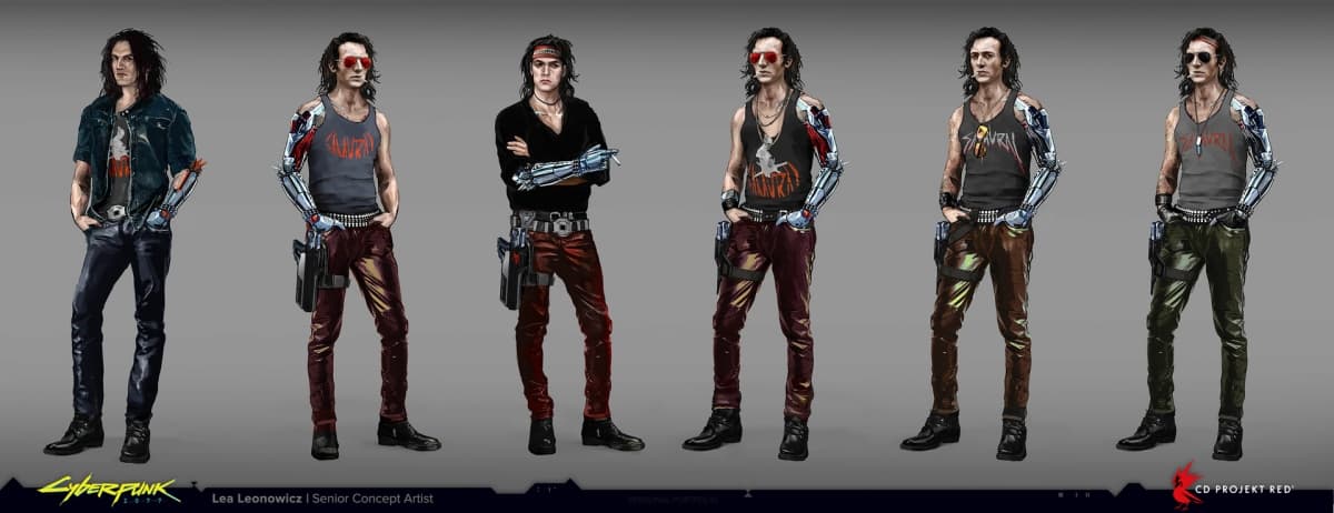Lea Leonowicz, artista conceptual senior de Cyberpunk 2077 publicó algunos de sus bocetos para el juego , en donde podemos ver la primera apariencia de Johnny Silverhand.