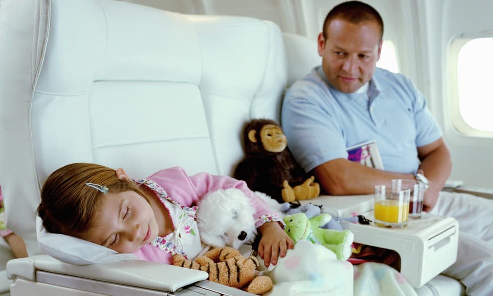 Elegir los asientos en el avión más cómodos para viajar con niños tampoco es tarea sencilla. Aunque todo dependerá del avión en concreto y de lo lleno que vaya el vuelo, lo ideal es quedarse todos en la misma fila, o al menos, si hay varios niños, que uno viaje con la madre y el otro con el padre. Así nos aseguramos su cuidado en todo momento y repartimos el trabajo.
