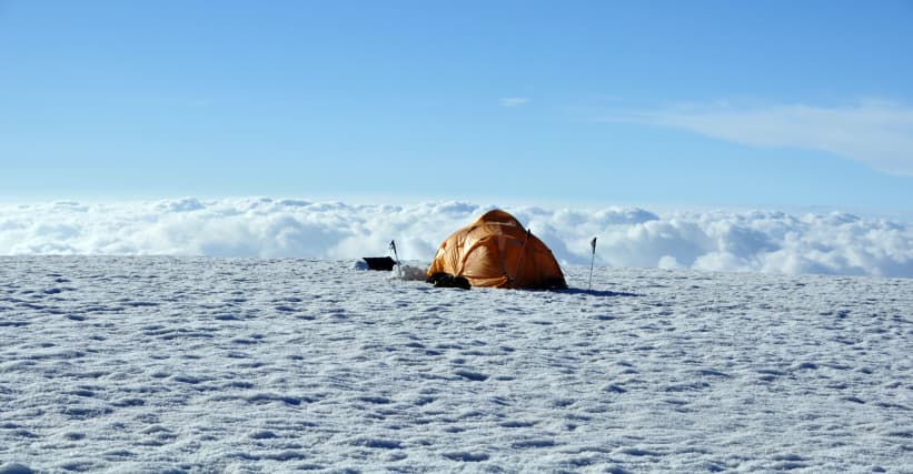 * Una carpa a "prueba de todo". Después de resolver el tema de la bolsa de dormir, el tema de la carpa es lo que sigue. Las carpas no son todas iguales, una de las diferencias entre una carpa para el verano y una para el invierno es que las de invierno tienen menos ventilación. Las carpas de expedición generalmente son de materiales más resistentes.