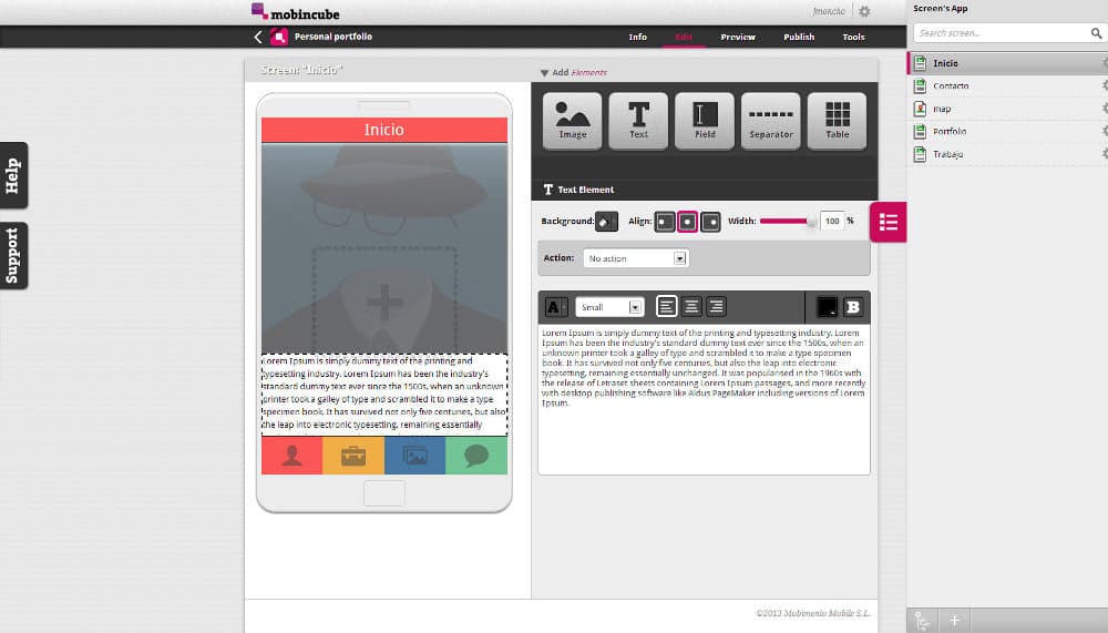Mobincube es una plataforma que permite crear aplicaciones para smartphones de la forma más sencilla posible y sus creadores aseguran que no es necesario saber programar porque las herramientas ya están dadas y el usuario sólo necesita tener buenas ideas para expresarlas y darles forma.