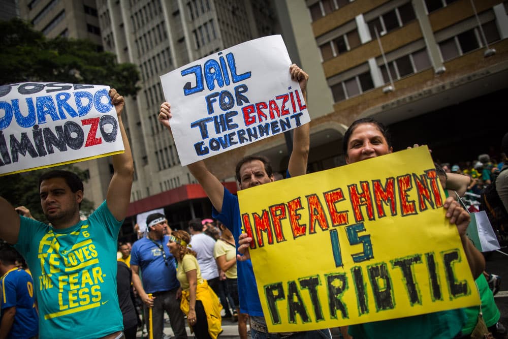 Las manifestaciones se repiten entre los meses de abril y diciembre de ese año. Bajo el lema Fora Dilma, reclaman el impeachment a la entonces presidente.