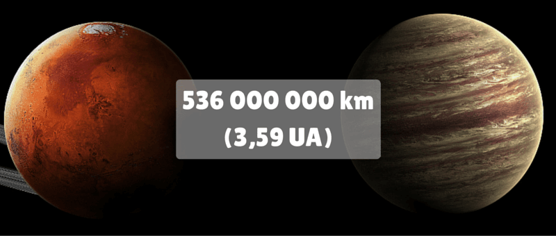 - Distancia entre Marte y Júpiter: 536 millones de km (3,59 UA)