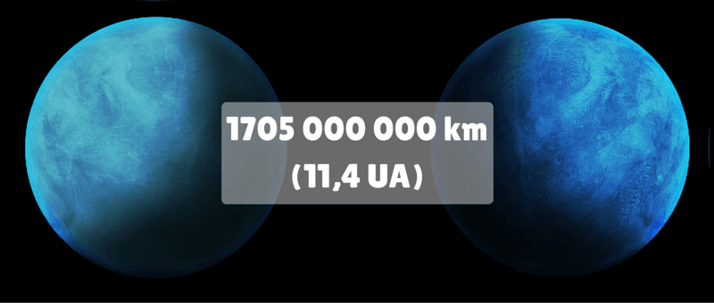 - Distancia entre Urano y Neptuno: 1705 millones de kilómetros (11,4 UA)