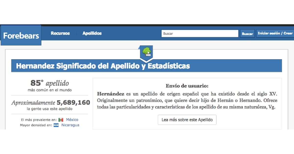 Si tú también quieres averiguarlo, sólo tienes que entrar a la página web Forebears para saberlo. Este sitio contiene información de más de 11 millones de personas en el mundo, por lo que resulta fácil conocer cuántas personas comparten apellido, en qué país se encuentra la mayoría y en qué otras naciones está presente.