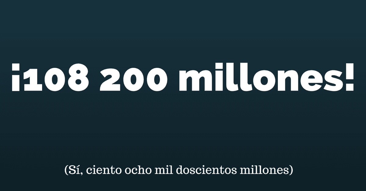 Impresionante, ¿no? Ciento ocho mil doscientos millones: 108 200 000 000 personas.