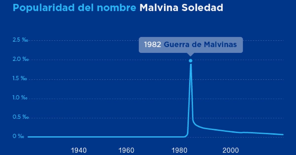 A su vez, los datos nos permiten entender la elección de los nombres según el contexto histórico. En 1982, por ejemplo, uno de los nombres más usados fue Malvina Soledad debido a la Guerra de Malvinas. En 1986 sucedió algo similar: Diego Armando encabezó los primeros lugares de la lista debido al Mundial de México 86.
