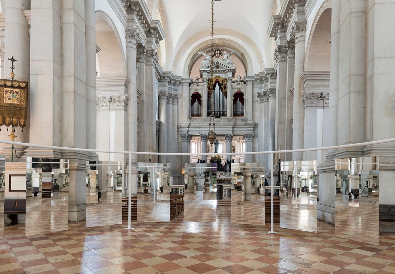 Las obras de Pistoletto están actualmente en exposición en la Basilica di San Giorgio Maggiore. En ella, el contraste entre lo nuevo y lo antiguo se hace patente. Te dejamos algunas imágenes para que puedas disfrutarlas: