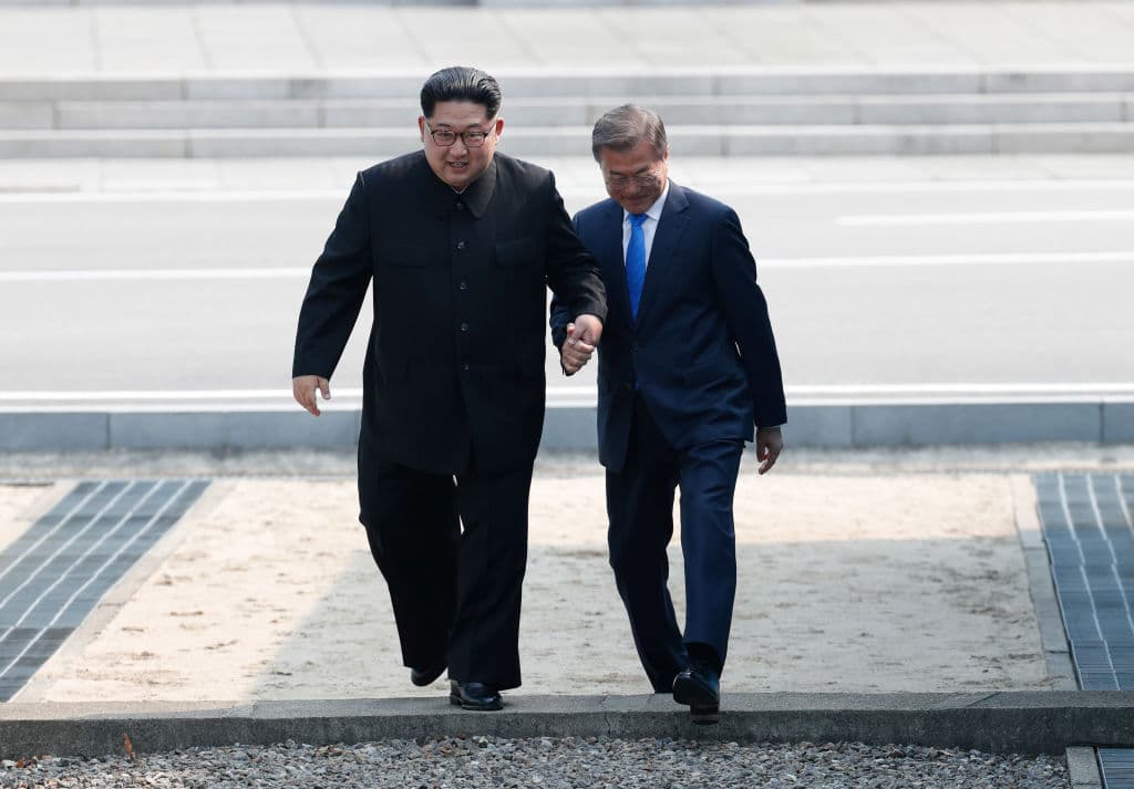 Nunca un líder norcoreano había pisado Corea del Sur. Kim Jong-un lo hizo. Luego fue el turno de Moon Jae-in. En un encuentro estructurado, ambos se salieron del papel y caminaron juntos por la frontera, después de haber cruzado cada uno a la otra Corea. Y lo hicieron de la mano (como muestra la foto)