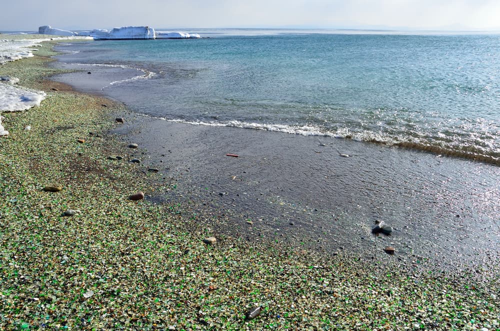 Con el paso del tiempo, no obstante, el oleaje del Pacífico y la nieve erosionaron las botellas acumuladas y las transformaron en piedras preciosas.