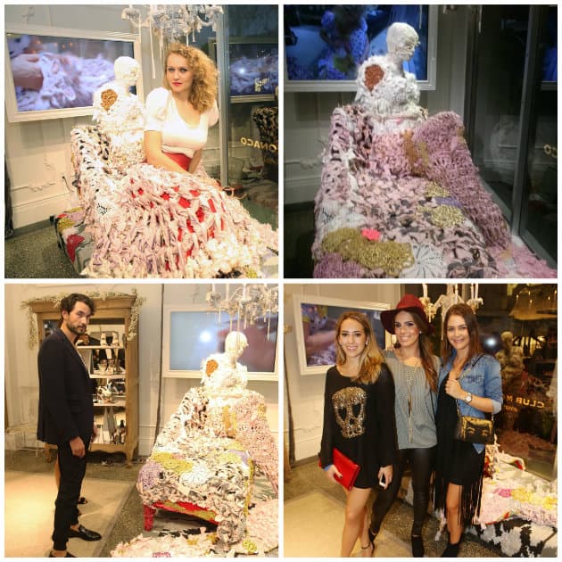Otra de las aperturas más populares durante el Art Basel fue la de la exclusiva tienda Club Monaco que estrenó en el paseo de Lincoln Road. Para la ocasión la marca invitó a la artista polaca radicada en NYC, Olek, quien presentó una extraordinaria instalación en la boutique. La impresionante obra en crochet fue hecha con retazos de tela de la misma tienda. ‘Quise hacer una declaración contra los desechos y desperdicios ambientales que vienen muchas veces de la industria de la moda. Fue una declaración arriesgada pero ellos [Club Monaco] lo entendieron y lo tomaron muy bien. No es una declaración en su contra, es en contra de la contaminación excesiva por nuestro deseo de tener cada vez más’, declaró la artista.