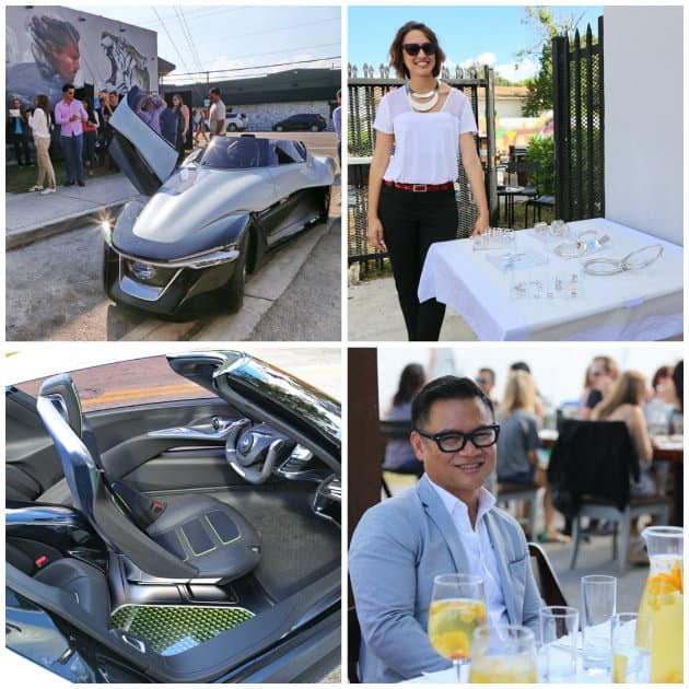 Otro de los lugares que aprovechó la fiebre artistica fue Wynwood, una de las zonas más pintorescas de Miami. Allí, entre carpas de arte y galerías llenas de curiosos, se presentó el auto BladeGlider de Nissan. El auto conceptual era una obra de arte en sí. Con un diseño sofisticado y moderno -además de ser de tecnología cero emisiones (eléctrico) hace honor a su nombre: Blade que significa penetrante y Glider planeador, o sea, es como ir cortante por la carretera pero con estilo. La presentación inspiró la una colección de joyería fina seleccionada por la estilista Claudia Alonso, una de las stylists más populares en Miami.