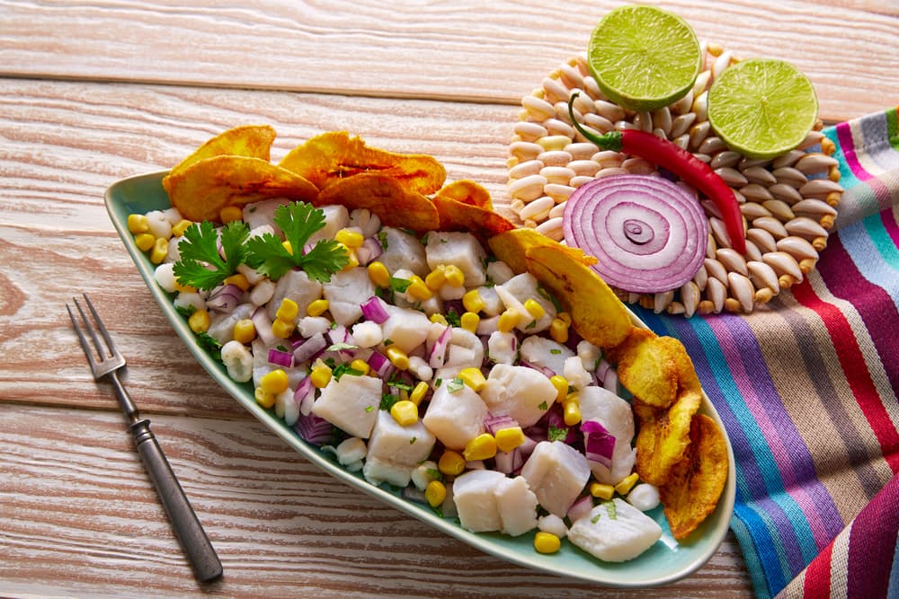 Es un plato que se trata de pescados o mariscos cortados en trozos, condimentado con jugo de limón, ají, sal y cebolla picada. Dependiendo del lugar, va presentado con diferentes acompañamientos.
