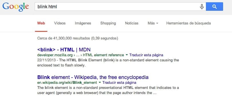 Google nos deja revivirlo, haciendo que los resultados de búsquedas parpadeen. Abre el buscador y escribe “ Blink HTML.”
