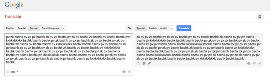 Entra al traductor de Google y, en la caja de traducción, escoge alemán como idioma de entrada. Copia el siguiente texto y, pégalo en el cuadro: