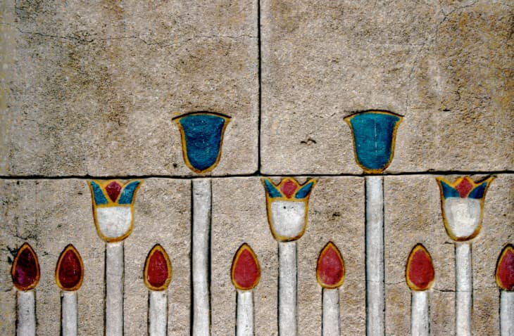 Los egipcios representaron en sus jeroglíficos un tipo de loto color azul, el cual recorría el mismo camino que el sol. Al amanecer el loto surgía entre las aguas, y al anochecer se escondía bajo estas. Era la perfecta metáfora del renacimiento y la creación.