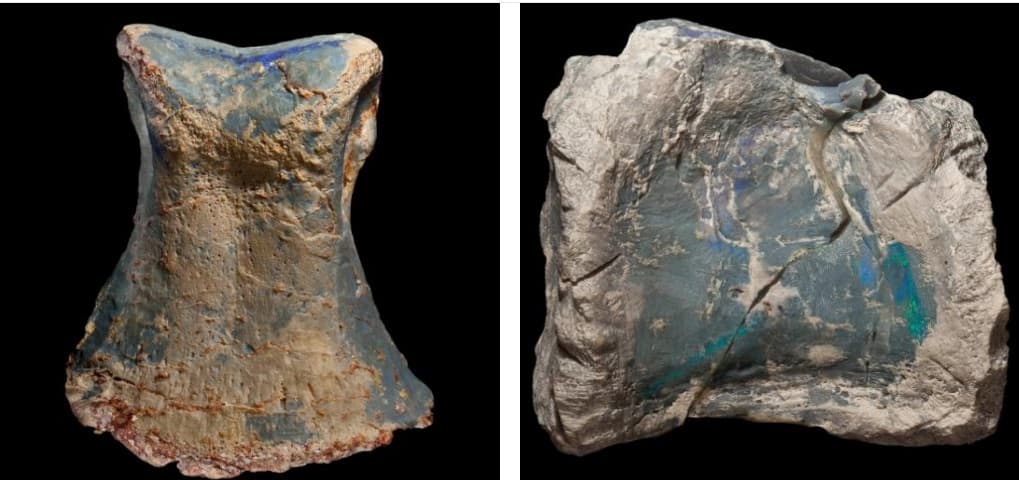 Este fósil se encuentra conservado en casi perfectas condiciones gracias a que el suelo de Lighting Ridge es rico en sílica, lo que forma enormes depósitos de ópalo en el suelo, éste se adhirió al fósil y por eso tiene esos colores tan brillantes y forma tan particular.