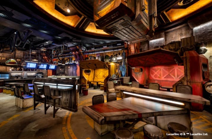 Entre tantas experiencias gastronómicas, lo más destacado es Docking Bay 7 Food and Cargo, que, como todos los demás restaurantes de la zona, tiene un menú inspirado en sabores de otra galaxia. Es el lugar perfecto para tomar un descanso, ¡pero mantén el buen humor! A los adultos les encantará Oga's Cantina, que sirve diferentes bebidas como el picante Bloody Rancor, el espumoso Fuzzy Tauntaun o el afrutado Carbon Freeze. Todo al son de un playlist con temas originales creados por músicos y compositores de todo el mundo.