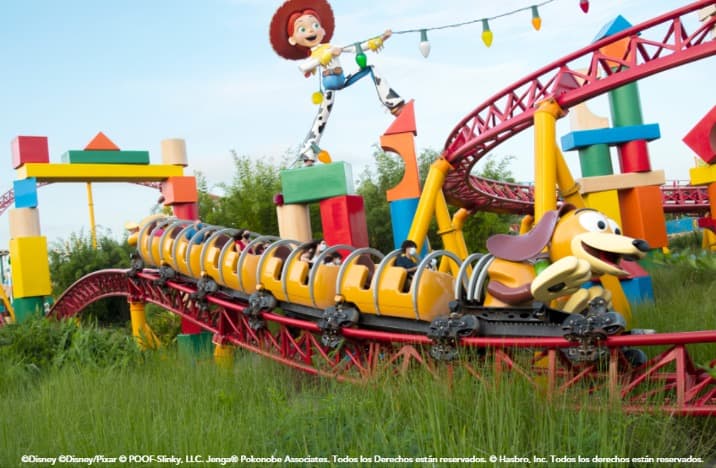 La zona rica en detalles tiene tres atractivos. El emocionante Slinky Dog Dash es uno de ellos, este lleva a los Visitantes a un viaje de alta velocidad en medio de los juguetes de Andy a bordo de los resortes Slinky. La montaña rusa está llena de altibajos y la altura mínima requerida es de 97 centímetros.