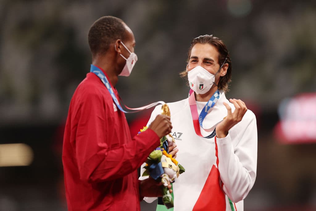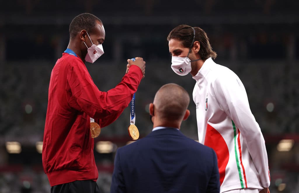Los entrenadores de ambos atletas se soltaron a llorar en las gradas de la pista mientras Barshim y Tamberi celebraran la victoria compartida en la pista.