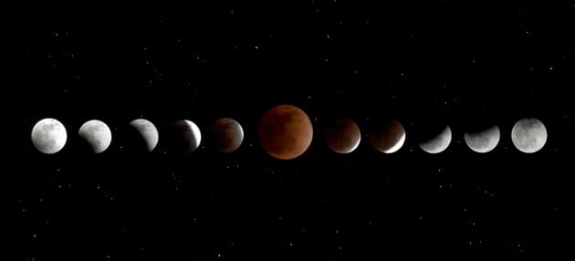 Un eclipse total de Luna se produce cuando la Tierra se interpone entre el Sol y nuestro satélite natural. Lo que vemos los terrícolas es que la Luna, al pasar por "detrás" de la Tierra, se oscurece. Sin embargo, tal como explicamos en ocasión del eclipse del 15 de abril, la Luna no queda totalmente invisible.
