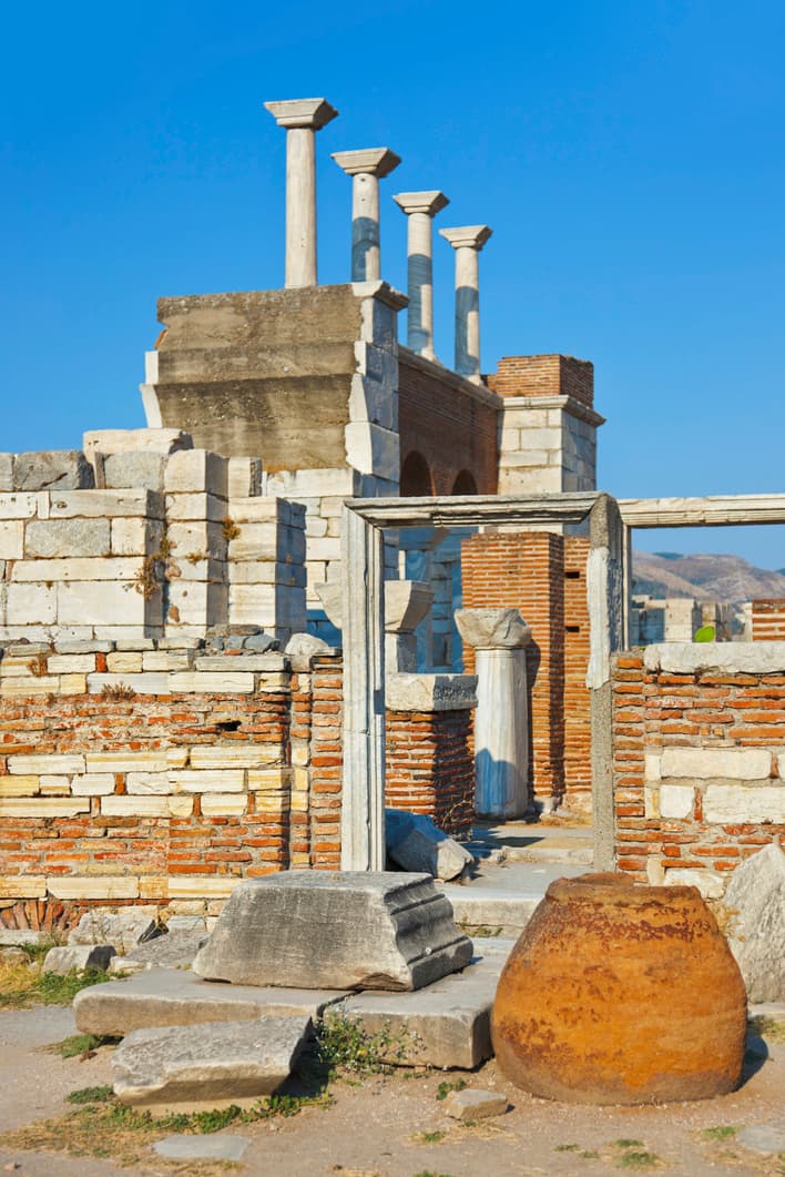 Las ruinas de Éfeso pueden ser visitadas embarcando en cruceros que parten del Puerto de Kusadasi, a solo 19 kilómetros de ellas. En el sitio arqueológico se observan el teatro u Odeón, que tenía capacidad para 25.000 espectadores; el Templo de Artemisa, que fuera una de las Siete Maravillas del Mundo Antiguo, con sus 20 metros de alto, sus 120 columnas y la estatua de la diosa confeccionada totalmente en oro; la Biblioteca de Celso, la más antigua aún en pie y la Iglesia de San Juan, erigida en el siglo VI en el preciso lugar en el que el apóstol redactó su célebre Evangelio.
