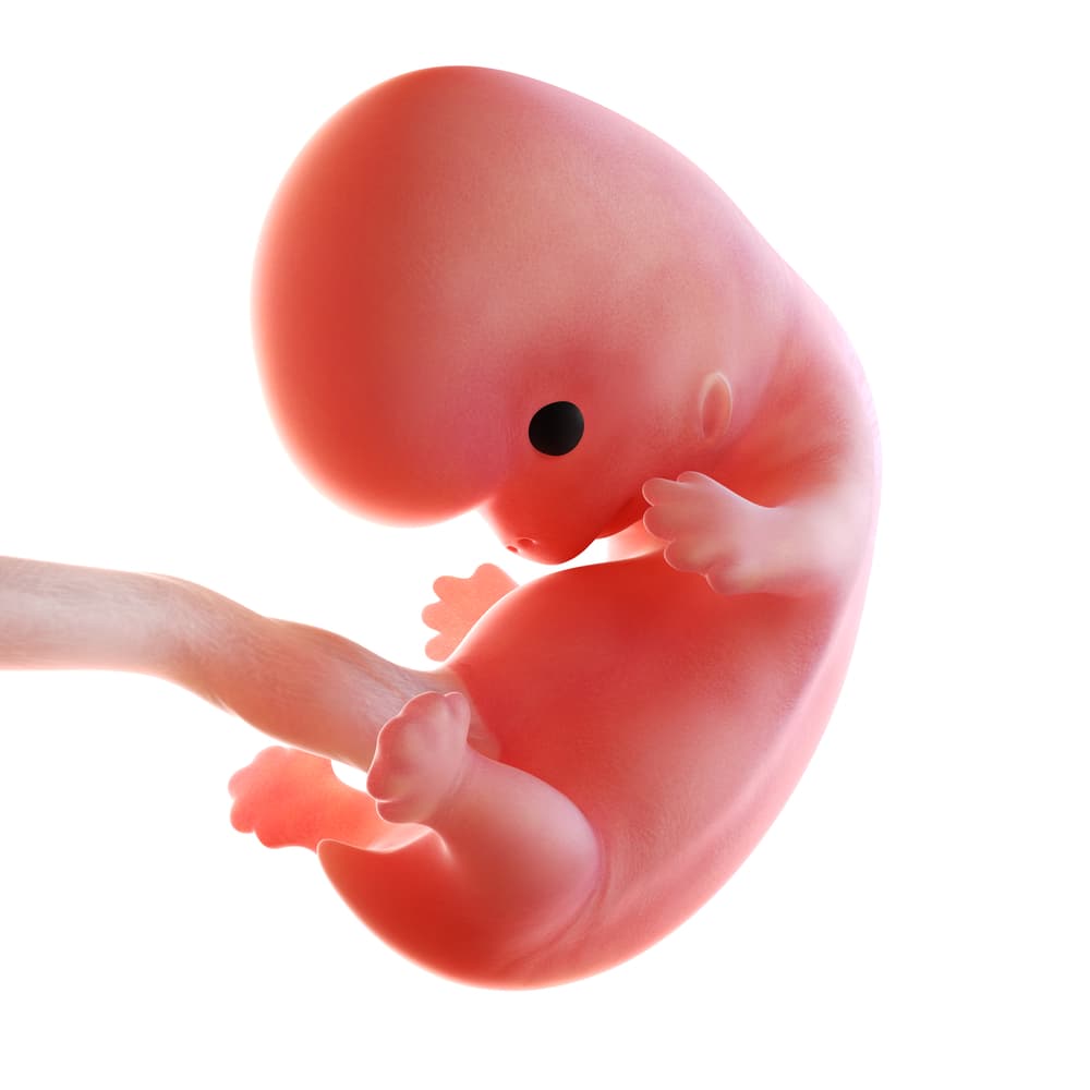 La fase general del desarrollo ya pasó, ahora se forman pequeños detalles como las uñas. Su piel aún es translúcida.
