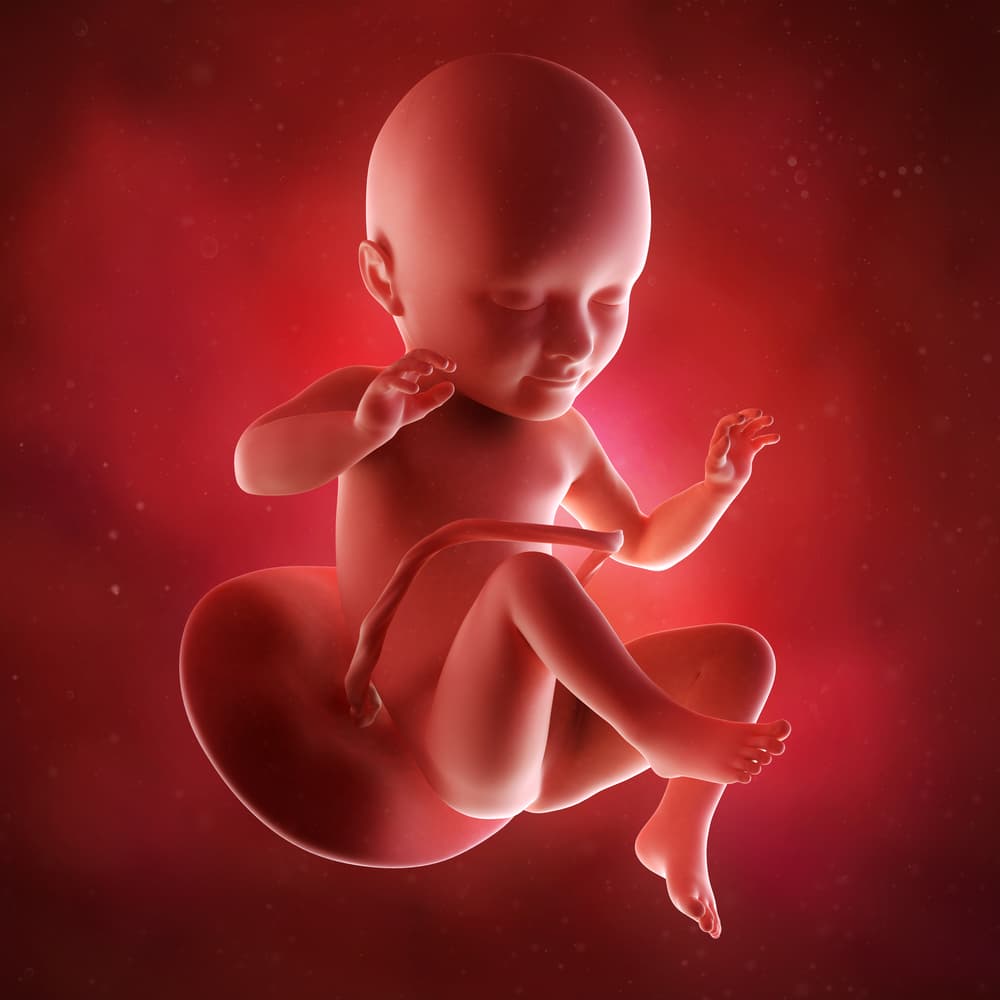 Esta es la última semana del segundo trimestre. El feto ahora duerme y se despierta en un horario regular, y su cerebro está muy activo. Sus pulmones no están completamente formados, pero podrían funcionar fuera del útero con ayuda médica.