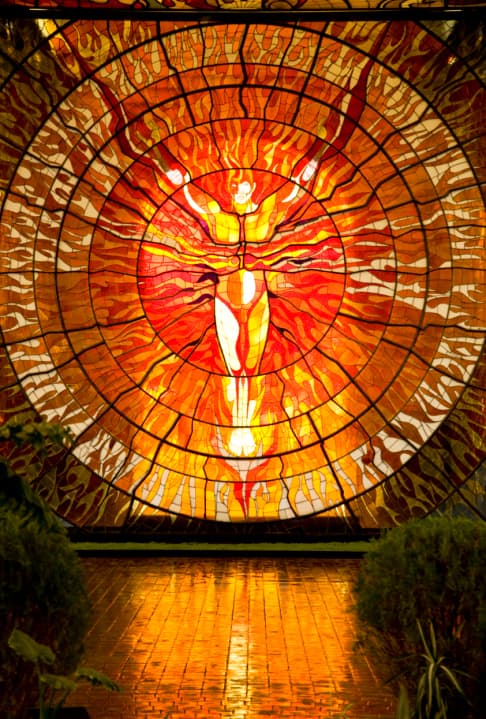 Pero esta es tan sólo una de las tantas imágenes que este enorme vitral tiene para ofrecernos. Visitarlo implica un viaje de inmersión en un mundo diferente, un instante en el que se podrá dialogar con las plantas bajo la diversa iluminación de uno de los vitrales más inmensos de todo el planeta.