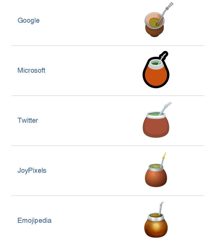 Este emoji fue aprobado por Unicode para formar parte de la nueva línea de emojis que saldrán para 2019. Se le conocerá como Mate Drink y se podrá usar en distintos sistemas operativos gracias al trabajo de los periodistas Florencia Coelho, Daniela Guini y Santiago Nasra, así como de los diseñadores Emiliano Panelli y Martín Zalucki.