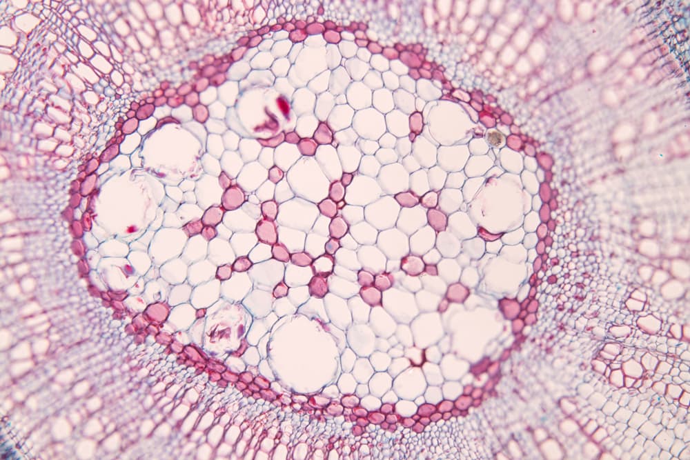 El xilema es el tejido vegetal formado por células muertas que contienen savia y sostienen a la planta. Así es como se ven bajo la lente del microscopio.
