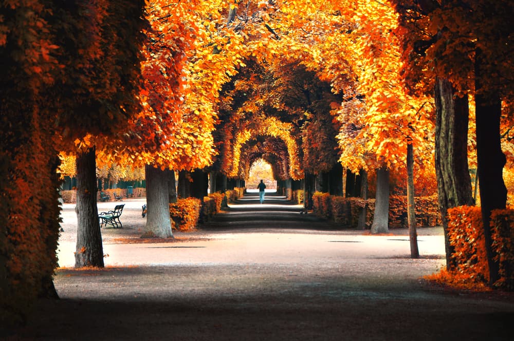 Los pasillos de árboles otoñales se convierten en el pasadizo perfecto para sumergirte en una historia fantástica.